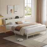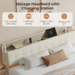 • Charging Station & LED: Storage headboard integrates a built-in charging station with 2AC outlets, 1 USB and 1 Type-C for phone and tablet charging. The LED light illuminates the storage space, combining modern convenience with sophisticated ambiance
